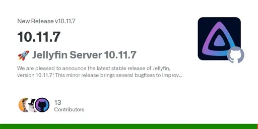 arrow-up113arrow-down1external-linkJellyfin 10.11.7 Minor WARNING IMPORTANT SECURITY FIXplus-squaregithub.comcm0002@toast.ooo to Jellyfin: The Free Software Media SystemEnglish · 2 days agomessage-square0linkfedilink
